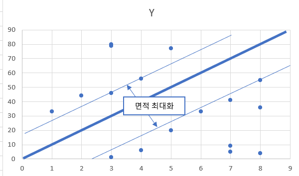 주어진 데이터들을 가능한 멀리 두개의 집단으로 분리시키는 최적의 초평면을 찾는 분류모델 알고리즘.