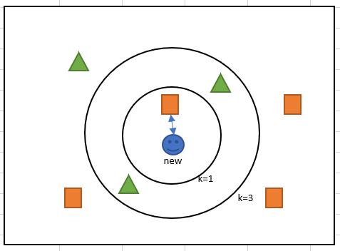 k= 가장 가까운 k개 데이터 선정, 다수결
