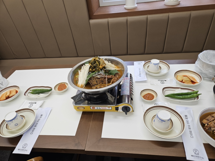 내부는 화이트+우드톤에 채광이 좋아서 전형적인 감자탕집 느낌보다는 밝고 정돈된 분위기!